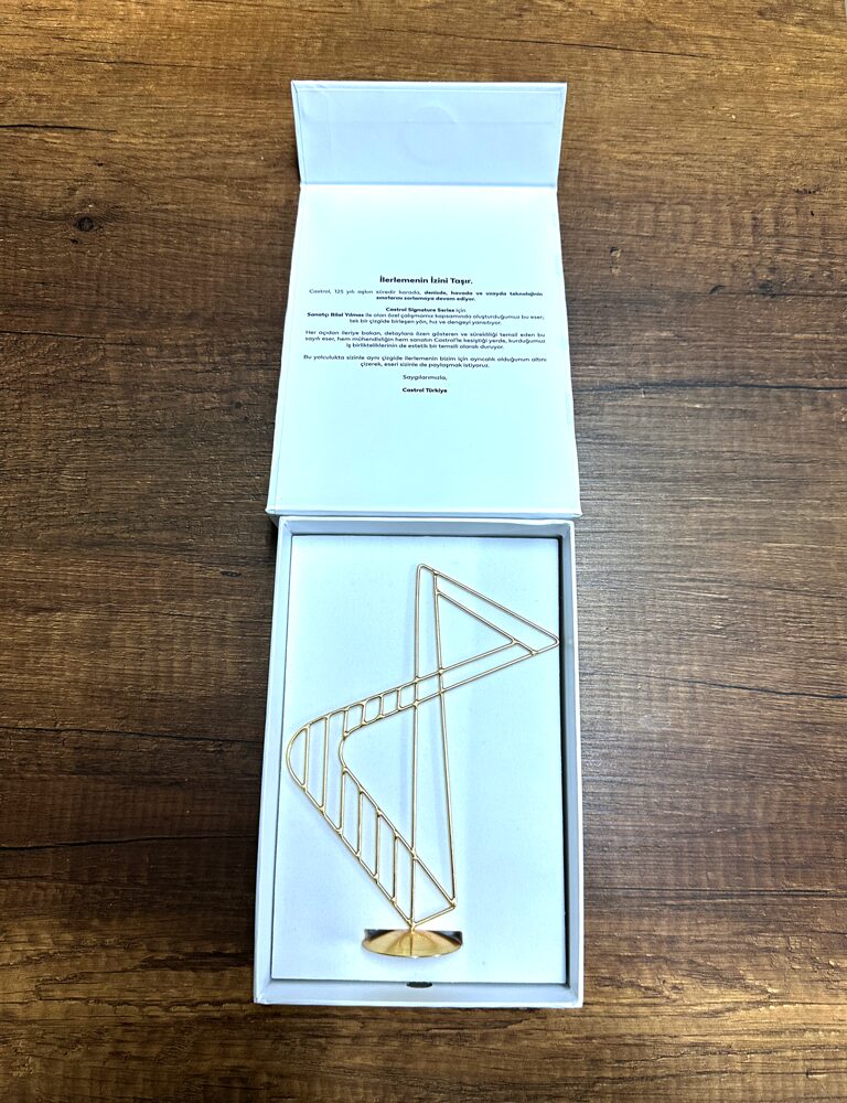 Dünya çapında otomotiv sektörünün öncü markalarından Castrol, “Signature Series” adı altında özel bir ödül için premium bir kutu tasarımı talep etti. Özel olarak bir sanatçı tarafından hazırlanan bu ödül, benzersizliği ve prestijiyle dikkat çektiği için kutu tasarımı da aynı seviyede kalite ve özenle üretildi.